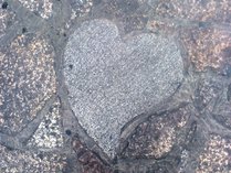 先日、ホテルすぐ近くの下通アーケード街を歩いてるとき、ふと足元を見てみると、なんとハートの形をした石がありました。
