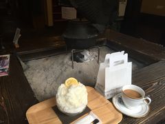 道くさ市の朝定食を作られ何時も安心安全な地元食材を綺麗な料理でお品書きをみては感動していただいてます。朝風呂後に母屋で杖立プリン種類が多くて楽しみながらお土産選び。温泉上がりにふわふわかき氷、女将さんが淹れて下さる珈琲で寛いでます。