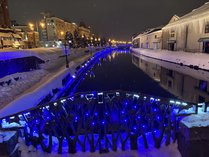 先日お仕事終わりに小樽運河に行き、現在開催中のイルミネーションイベント「青の運河」を見てまいりました。青い光に照らされた運河はとても綺麗で、私が行った日はあいにくの雨だったのですが、青い光の反射した水面が雨粒に打たれて揺れる姿もまた素敵でした。