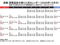 投稿時期:2025年10月3日10月7日(火)〜10月10日(金)は日帰り入浴(立ち寄り湯)の営業をしております。