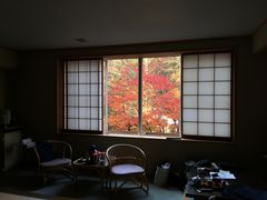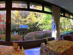 車で深夜駆けつけたホテル。妻と母は先に着いていた。通り過ぎた星野温泉やハルニレテラスは夜にもかかわらず賑わっていたが、このホテルは別世界。静かで落ち着けます。とにかく温泉へ直行。ライトアップされた紅葉を眺めながらの露天風呂にも癒されました。翌朝、窓を開けてびっくり。窓の外が真っ赤な景色。すばらしいロケーションです。ロビーからの眺望も紅葉の中。もっと客が来てもいいのにと思いました。静かに軽井沢の自然を楽しむには絶好のホテルです。もちろん二日目の朝も露天を楽しみました。