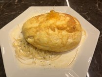 ふっわふわのスフレ卵が乗っているカルボナーラ