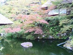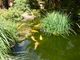 さほど広くはないですが、こじんまりした茶室と石橋と池と大きな鯉と青もみじ
