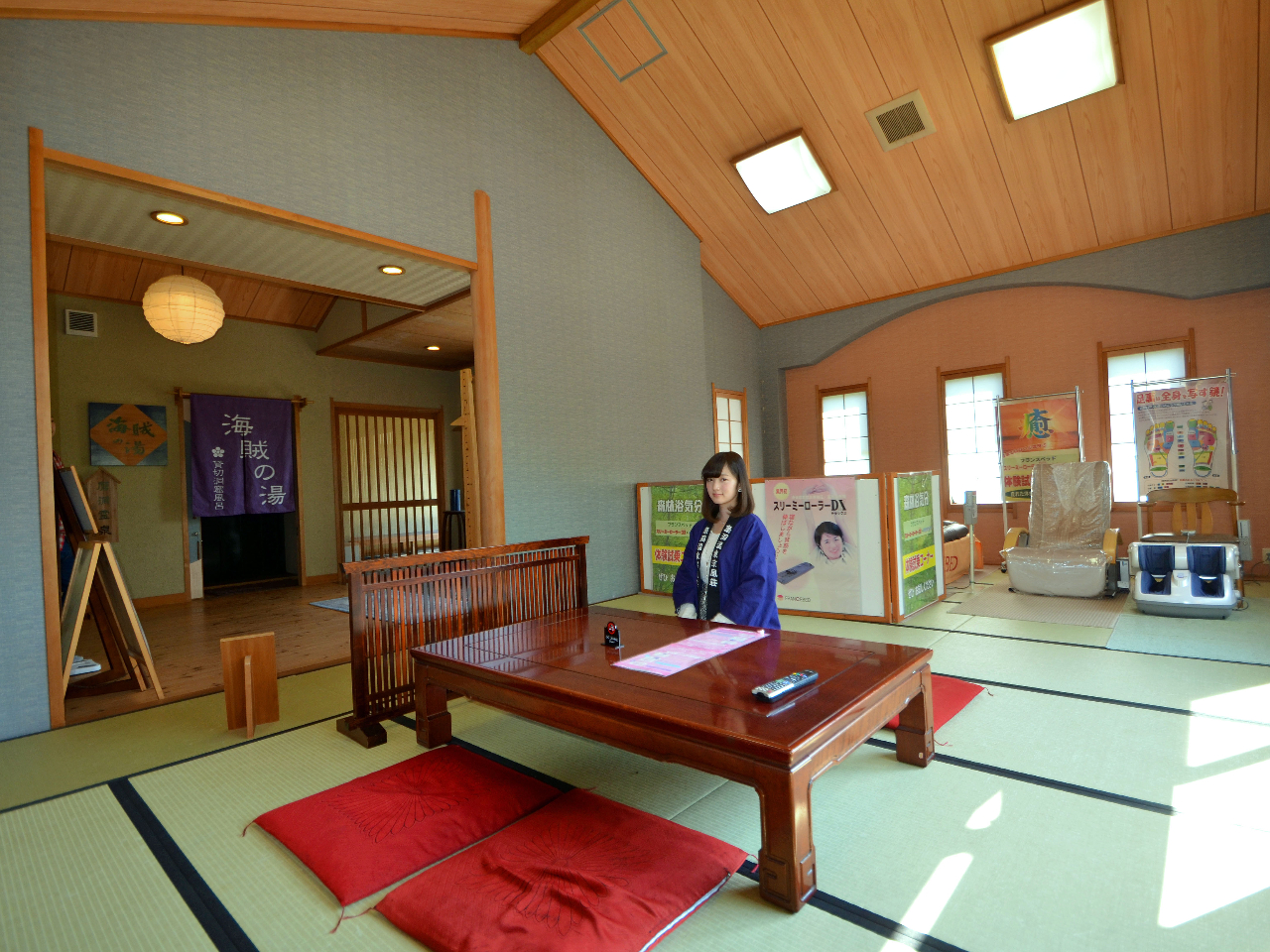 立ち寄り湯でものんびりできる。ガーデン風呂で森林浴を楽しんだ後は湯上り処でくつろいで。ファミリー、カップル、グループ利用者には洞窟風呂(貸切45分、電話にて要予約)2500円も人気。カラオケルームもある。