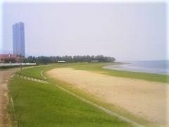膳所公園から近江大橋西詰を通り、琵琶湖畔を北上。先に見える大津プリンスホテルの超高層ビルとの間には、大津湖岸なぎさ公園が拡がっています。湖というよりは海岸の雰囲気です。