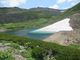 富士見岳から不消ヶ池(きえずがいけ)に沈む雪渓を見る