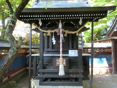 黒色の社殿はスサノオを祀る「津島神社」で、京都・八坂神社と同じ厄除けとなっている。そのため、厄病退散!新型コロナ!と記載されていた。もしかしたらこの黒色は陣屋の木材を使用している??