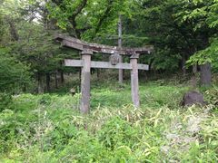 群馬県側から車で行くときは、急な下りに気をとられていつも通り過ぎてしまうのですが、長野側から戻ると、四阿山登山口のちょっと手前の藪のなかに、峠の名前の由来になったと思しき石の鳥居がひっそりと佇んでいるのが見られます。
