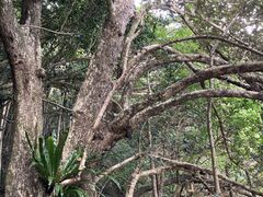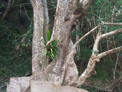 東村の天然記念物に指定されている木。県内でも希少なこのサキシマスオウの木は、奄美大島以南の亜熱帯から熱帯にかけて分布しており、板のような根(板根)をつくる事で有名。ここの木は高さ18m、胸高周囲2・9mで12本の根は、みごとな流線形を描いており、沖縄本島で最も発達した板根を持っている。