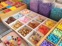 子供とスイートキャンドルを作成。土台になるゼリービーンズみたいなキャンドルを選んだら、上にデコ用キャンドルを飾り、最後はスタッフさんが全体を固めてくれて受け取り。可愛いですが、思っていたより小さく、作業時間も10分程度で子供が物足りなさそうだったので、追加でアイスクリームキャンドルも体験しました。こちらは選べる素材も作業も増え、仕上がりもとっても可愛い!平日だったのにお店は盛況で、指導してくれたスタッフさんは大忙しでしたが、優しく丁寧に接していただき、子供も楽しそうでした。