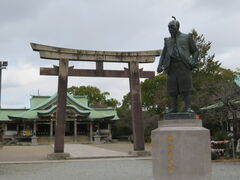本丸南、内堀と南外堀の間に位置します。豊臣秀吉公・秀頼公・秀長卿を奉祀する神社です。秀石庭と言われる庭がステキです。秀吉公像の前で多くの人が写真を撮っていました。