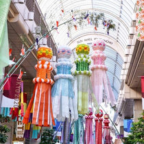 飾りは各個店の皆様が数か月前から手作りで準備し、吹流し5本1セットで飾るのが仙台七夕の習わしとなっています。
