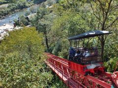 森林鉄道に於けるインクラインとは、高低差のある二ヶ所の線路を縦に繋ぐため、設けられた昇降設備。このインクラインは観光用のもので、輸送システムではなく、水力で稼働する。斜長距離92mを、5分かけて昇降する。昇った先には展望台がある。