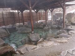 ロープウェイ乗換駅の新穂高ビジターセンターにある温泉で湯量豊富に注ぎ込む露天のみの風呂である、又環境保全と言うことでシャンプー、石鹸は使用できない、勿論持ち込みも、少し残念だが環境面では仕方のないことであると思う、山の中のこじんまりとした温泉の感じで、背負っているリュックがある為、脱衣所籠は少々狭い、貴重品入れはあるので安心、お湯は熱好き小生ゆえか少しぬるく感じた、流れ落ちる湯(源泉?)に手をかざすと表面はさめて冷たく中ほどから下が暖かいお湯がかけ流しになっていた、入り口に効用、湯質等書いてあったがそういうことはねっから無頓着あたたかい温泉にゆっくり入り至福の時を過ごせばそれでよしの小生、偶然入浴は自分だけ、誰気兼ねなくじっくり疲れを癒すことが出来た、3〜40分ゆっくり入る、出るころには数人の人が入ってきた、願わくは囲みの塀、せっかくの景観を見えないのが少し残念、人通りが多くやむおえないとは思うが、、、タオル等の貸し出しもあるので、思い付きで入れるのもいい。