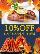 【平日限定秋の特別プラン宿泊料金10%割引】
