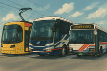 長崎バスの力強さ、電車の便利さ、県営バスの安心感。