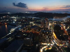 馬関まつりの真っ最中で、さぞ混んでいると思ったが、屋台街は大盛況であったものの、タワーは空いていてゆっくり夜景を堪能できた。