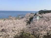対馬グランドホテルの敷地の周りには70本を越えるソメイヨシノの木があり、館内のあちらこちらで桜を感じることができます。