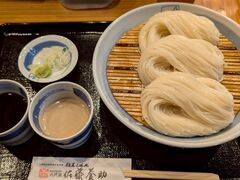 カウンターとテーブル席が少しだけある小さい店舗ですが、美味しい佐藤養助の稲庭うどん。冷たいのは汁が2種類楽しめ、温かいのは優しい味です。