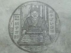 夫と車で猊鼻渓に向かっていたところ、猊鼻渓の手前で赤い棒を持って誘導していたおじさんが言う通りに進んで行ったら『紙すき館』でした。道を間違ったかなと思ったら、元気のいい『紙すき館』のおばちゃんが出てきて「奥にも駐車場あるけど500円かかるからね。ここは無料だから。良かったら帰りにお団子とかお土産買ってちょうだい」と言いました。