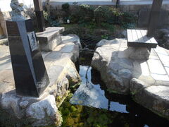 全長100メートルに及ぶ水路が流れ、色とりどりの錦鯉が放流されている。