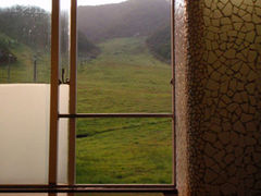 突き当り内湯の窓を開ければ、 白馬乗鞍温泉スキー場のゲレンデ! とてもいいお湯でした!