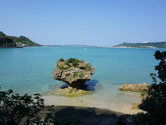 海中道路に来たことから、浜比嘉島のアマミチューの墓まで行ってみました。海岸に飛び出た小さな島でコンクリートの歩道があるため歩いて渡ることができます。浸食を受けた石灰岩の奇岩も多く、その島に今でも地元から信仰されている聖地の、アマミチューの墓がありました。とても気持ちの良いところです。