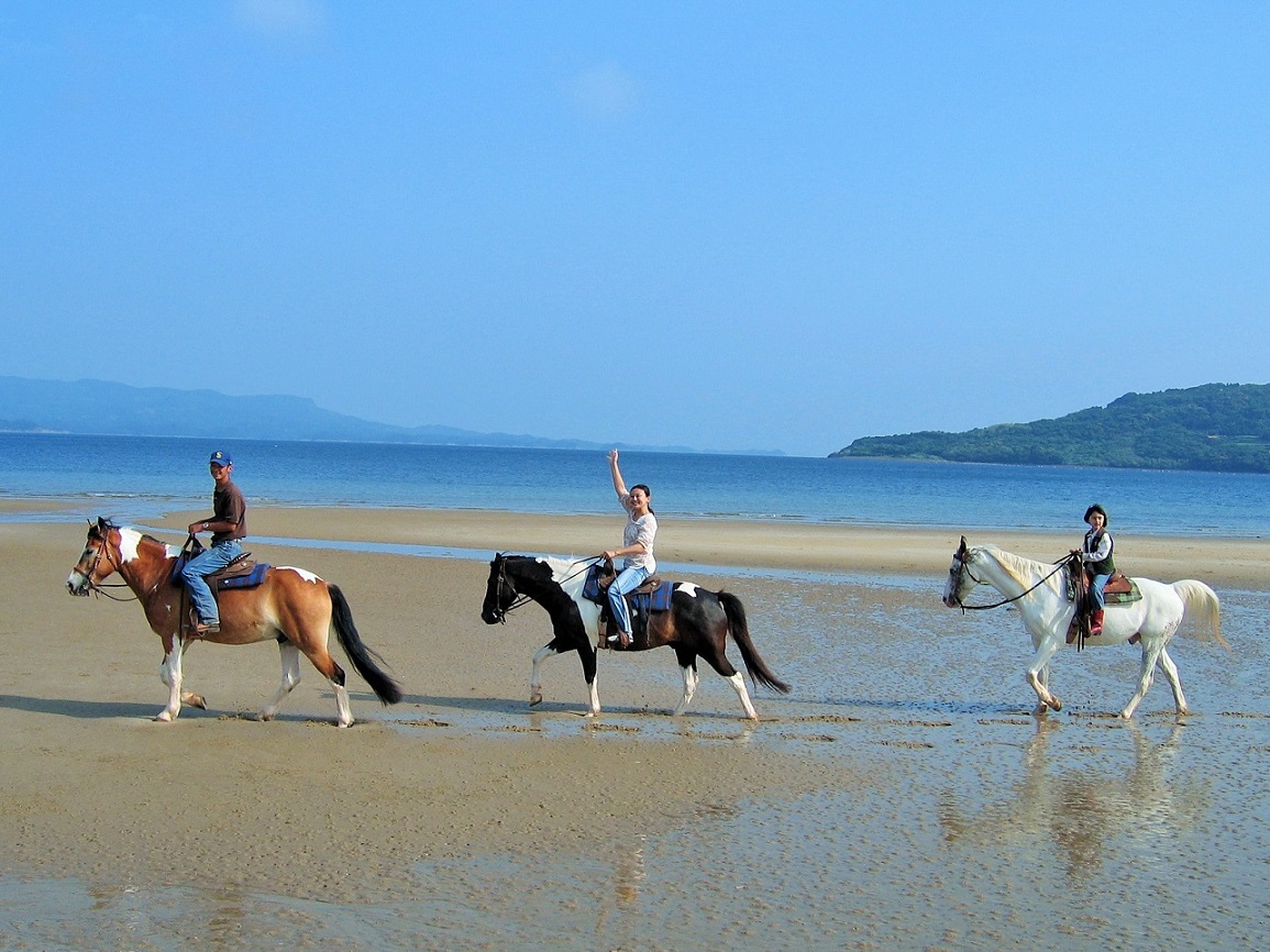 平戸の観光名所、千里ヶ浜ビーチの目の前に立つ乗馬クラブ。アメリカから直輸入したクォーターホースをとりそろえ、初めての方でも気軽にウエスタンライディングが楽しめます。子供から大人まで楽しめる引き馬一周800円〜、初心者基礎レッスンの乗馬教室3,300円、ビーチコースも5,500円と手軽な値段。