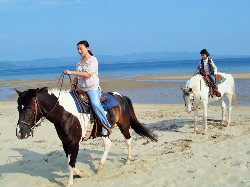 千里が浜で乗馬を楽しむコースです♪美しい海を眺めながら、馬の上で感じる潮風は最高の心地よさです。