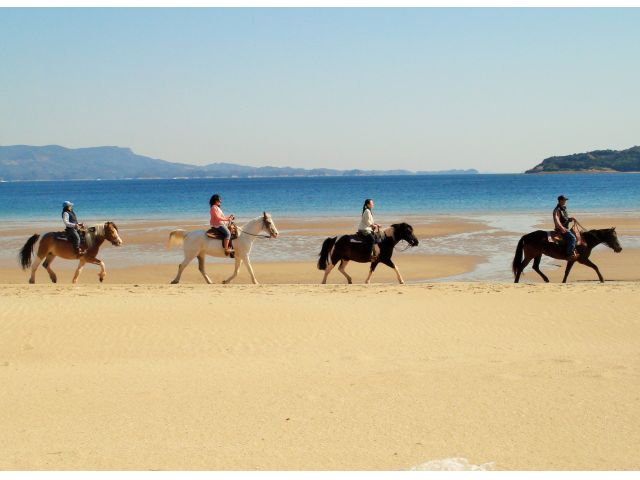 千里が浜で乗馬を楽しむコースです♪美しい海を眺めながら、馬の上で感じる潮風は最高の心地よさです。