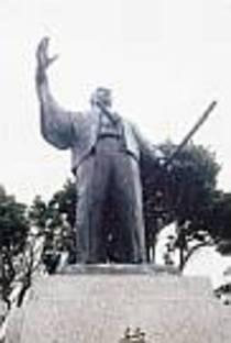 1543年14代島主種子島時尭は、16才の時金二千両(現在の1億円)でポルトガル人から2丁の火縄銃を購入し、これをもとに初の国産銃製造に成功した。鉄砲館の向かいの小高い丘の上に、彼の偉業をたたえ建てられた銅像だ。右手を少し揚げ、左手には鉄砲という出で立ちではるか彼方を見つめている。