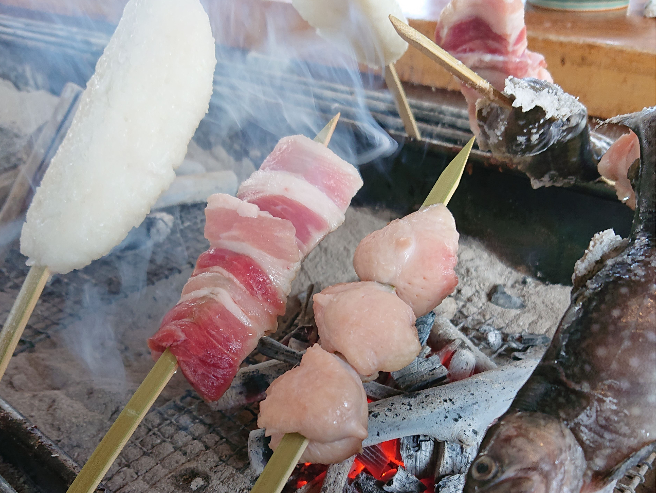 ◆長野・信州◆川魚や五平餅を囲炉裏で炭火焼き【茅葺き屋根の下でじっくり炭火焼】