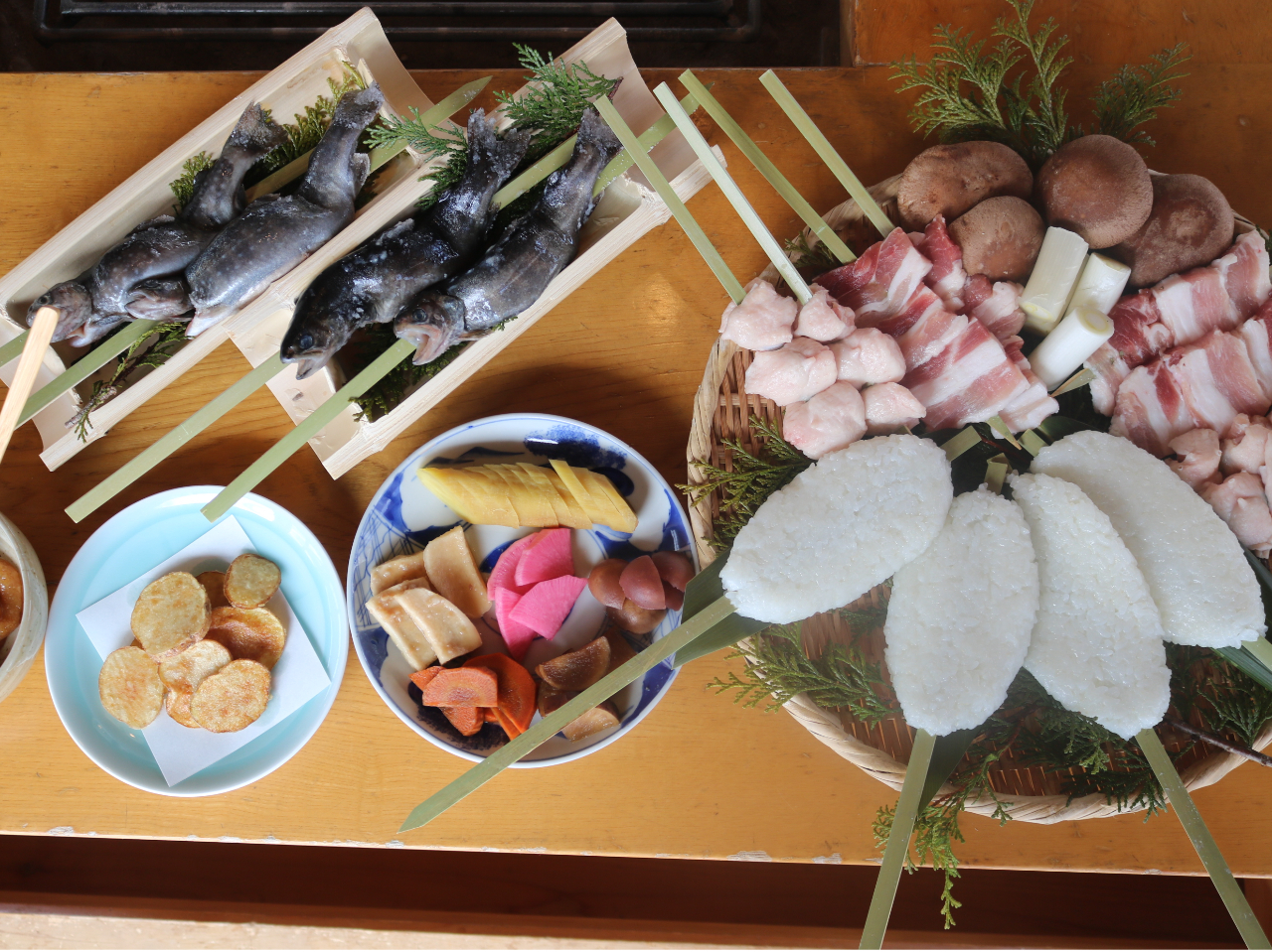 ◆長野・信州◆川魚や五平餅を囲炉裏で炭火焼き【茅葺き屋根の下でじっくり炭火焼】