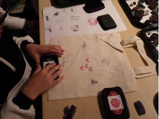 セレネ美術館で芸術にふれてた後、紋切遊びと消しゴムはんこを使って、