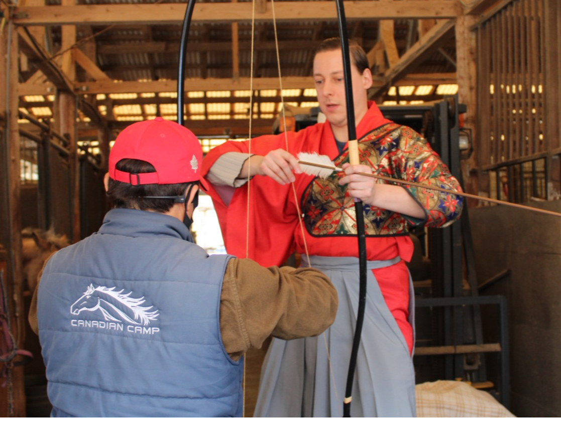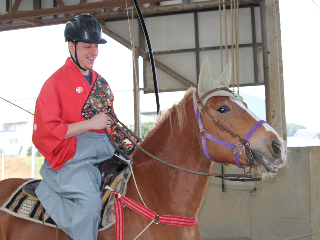約30分間弓の練習をした後、馬に乗って流鏑馬にチャレンジ!