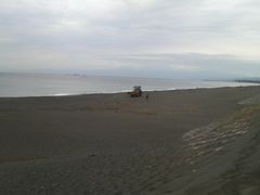 辻堂海浜公園の東側の駐車場から、国道134号線の下を抜ける道を通って辻堂海岸へ出ますと、海岸線にたまった枯れた海草が重機によって集められ、小山のようになっていました。このような自然の姿の海岸線も、ちゃんと手入れがされているのだと良くわかります。