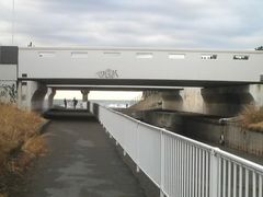 海岸より駐車場方面。湘南道の下を通り駐車場へ。