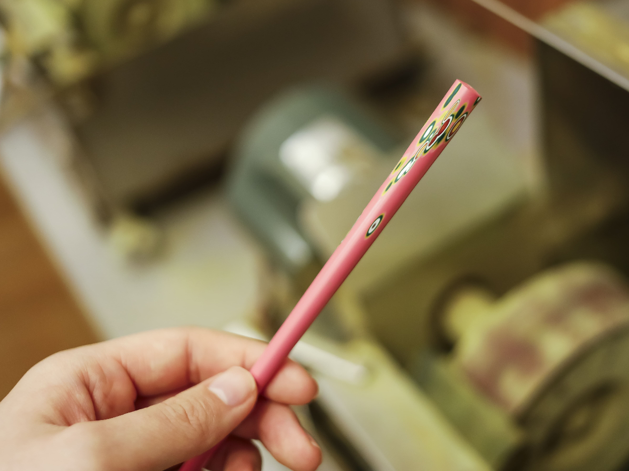 グラインダーという機械を使って、選んだお箸を削っていきます。