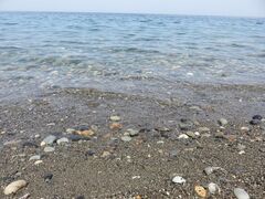 長い砂利浜なのでビーチサンダルでは砂利が入って痛い
