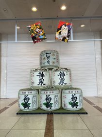 当館ロビーにて俵飾りを設置いたしました。フロント周りもお正月らしい装飾に