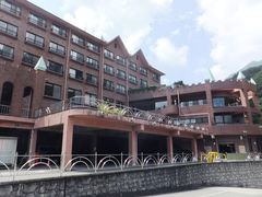 オテル・ド・マロニエは、会員制のリゾートホテルです。原則として一般開放されてはいませんが、その分落ち着いた雰囲気が味わえます。建物の重厚さやインテリアの風格は、中世ヨーロッパの建物を彷彿させる高級感があります。フロントの方の言葉遣いや物腰も、とても洗練されていて好感が持てました。家族3人でツインの客室に泊まりましたが、ゆったりとしていてくつろげました。朝食レストランから、御在所岳と運行中のロープウェイが見えるのも、また格別。そのロープウェイから俯瞰したホテル外観もUPしておきます。