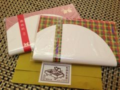 店員さんが懐紙で作るぽち袋や箸袋の作り方を親切に教えてくれて、見本も気軽に下さいます。