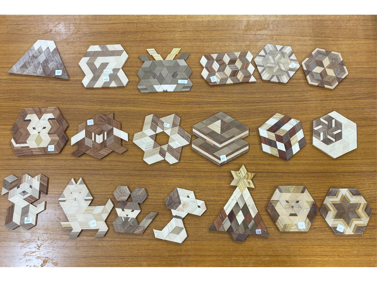 コースターやモチーフなどオリジナルの寄木細工がつくれます♪