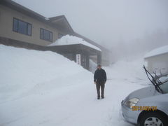 到着すると駐車場は写真の通り冬景色、とんでもない積雪です。
