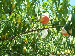いちご狩りがとても楽しくおいしかったので、桃狩りに参戦しました!手を伸ばせば、桃をワンクリックでもげました。少し色付きが無いかな((p_-)と良く観察しながら、もぎました。でも最初にもいだ桃は、お野菜か(?)みたいな初めて味わう桃でしたが、フレッシュなのでおいしくいただきました。以降、よく見て、白桃黄桃たくさんいただけました。時間無制限ですが、おなかが制限ありですね♪後で王国の住人に聞くと、台風でたくさんの桃が落ちたそうです(泣)フルーツ王国さん!がんばって!