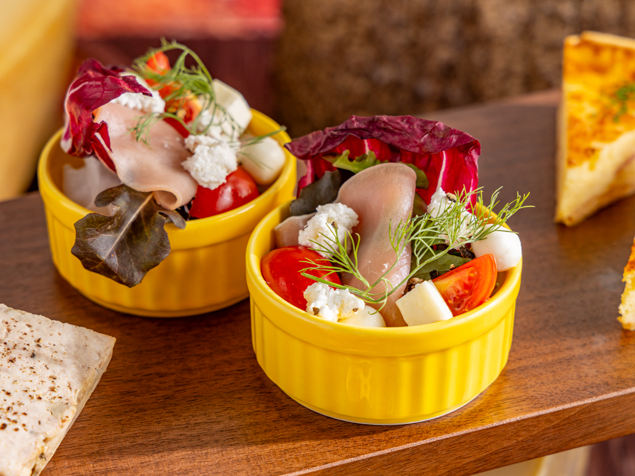 カッテージチーズ・モッツァレラ・生ハムのサラダ リモーネ添え