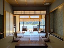 こちらはご夕食をお部屋でお召し上がりいただくことができ、広縁からは円山川を眺めることができる、当館で一番広いお部屋にございます♪