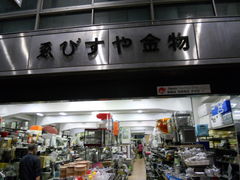 陶器や金物、厨房器具などを扱うお店が立ち並んでいる中でも、ひときわ目立っていたのがこちらの「ゑびすや金物店」です。