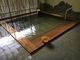 浴室空間が広めの内湯、浴槽は正方形6-7人サイズの木造。