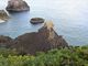 海金剛の遊歩道には北に向かう道もあり、それを進むと海金剛を西側から眺めることもできます。西側から見るピラミッド型岩礁の姿が、南側から見た姿とは全く違ったイメージになるのに驚きます。